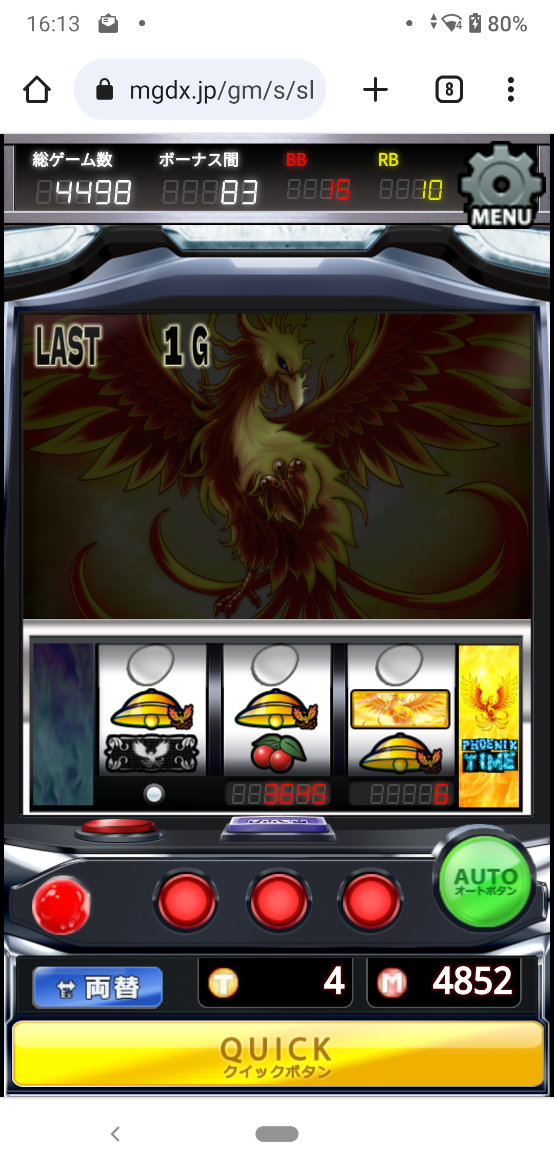 5500枚まで増えてから400、400、500とハマりましたが、フェニックスタイムでビッグ 連荘してくれました!またハマるの怖いので200回して退散しました。 |