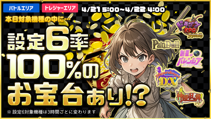 ※対象機種をイベント開始時間前からプレイされている場合は一旦精算してからご参加ください。精算しないままプレイを続けた場合、本イベントは適用されませんのでご注意ください。
