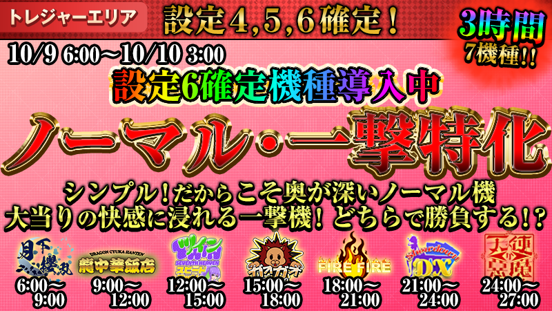 ※各開催時間毎に必ず時間内に開始と清算を行って下さい。それ以外の場合イベント参加の保証(及び正常な設定数値の表示の保証)はできかねますのでご注意ください。