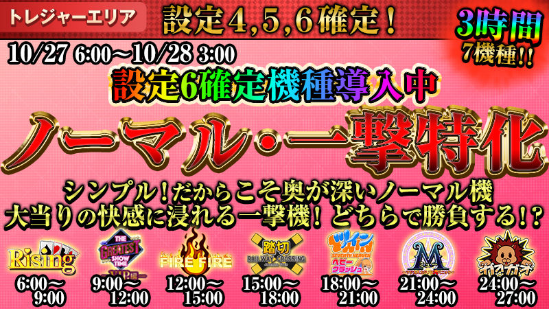 ※各開催時間毎に必ず時間内に開始と清算を行って下さい。それ以外の場合イベント参加の保証(及び正常な設定数値の表示の保証)はできかねますのでご注意ください。