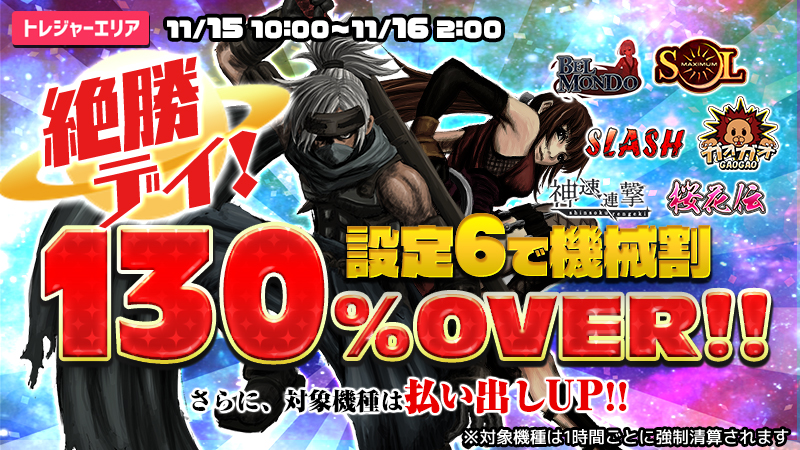 ※対象機種をイベント開始時間前からプレイされている場合は一旦精算してからご参加ください。精算しないままプレイを続けた場合、本イベントは適用されませんのでご注意ください。