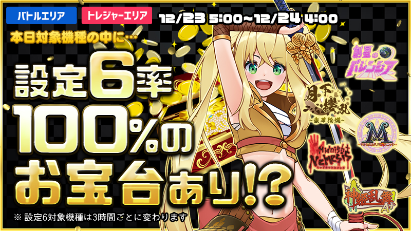 ※対象機種をイベント開始時間前からプレイされている場合は一旦精算してからご参加ください。精算しないままプレイを続けた場合、本イベントは適用されませんのでご注意ください。