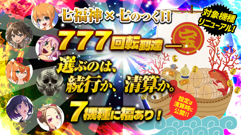 【七福神】7機種限定☆超ALL設定で大開放!!!